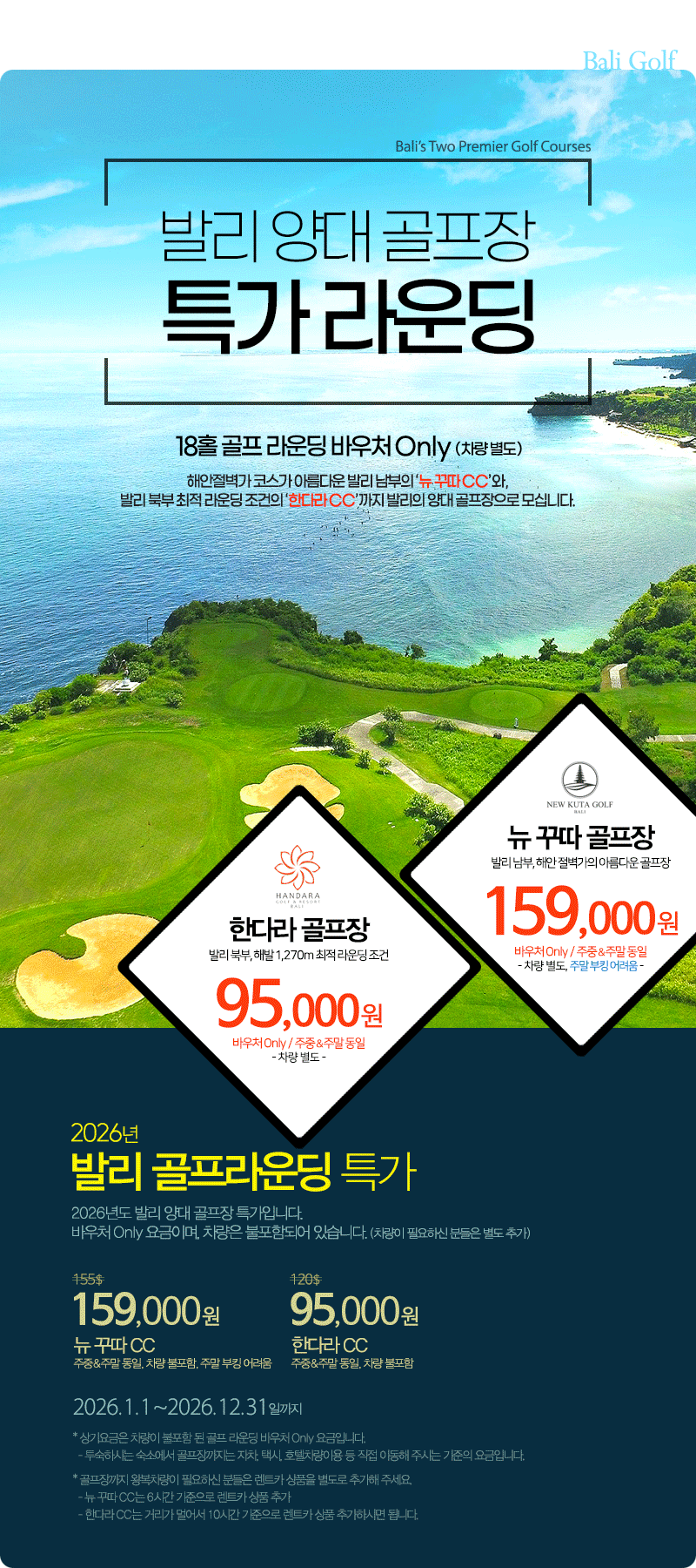 [ Bali Golf ] 발리 골프 라운딩 초특가 - 뉴꾸따 CC, 한다라 CC, ~2026년12월31일까지 |