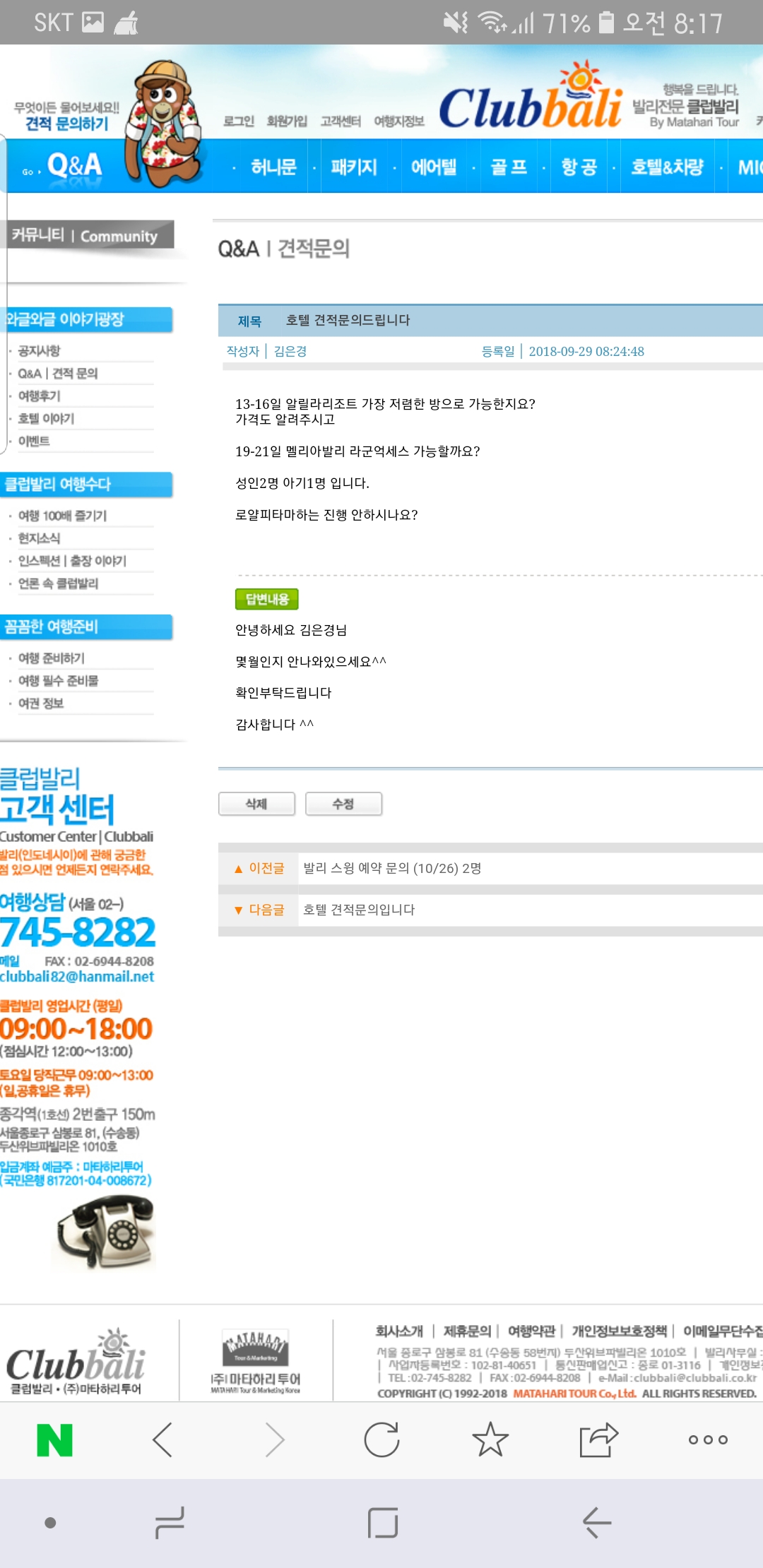 저희 홈페이지를 통해 호텔정보 및 금액확인이 가능하오니 참고부탁드립니다.